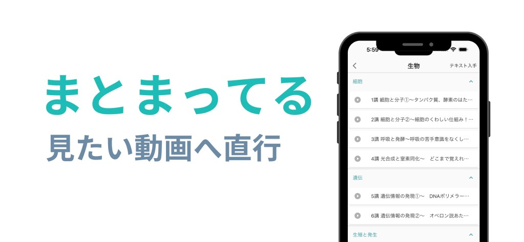 Youtubeは意外と動画がバラバラになっていて、目当ての動画が見つからないなんてこともチラホラ。アプリでは講義が科目・単元ごとに整理されていて快適です。