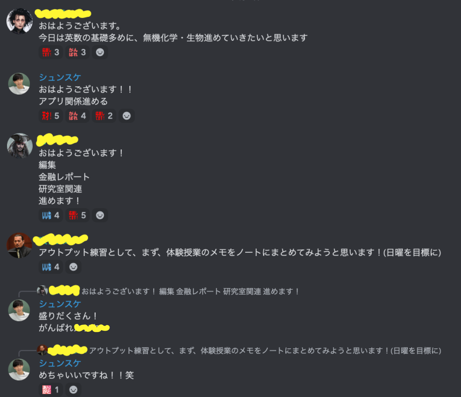 ここサポでは、日々の「やること宣言&やったこと報告」や「オンライン自習室」などで、何かに向かって頑張っている人たちで励まし合って慰め合っていける環境を作っています!